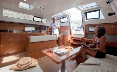 Freedom to anchor, freedom at sea. Everything about Sense is an ode to freedom. Life on board has been thought out to help you be as self-sufficient as possible and make you feel good at all times. Both sailing and at anchor, Sense provides unusual stability and you can move about her as free as the wind. The three step 45° companionway connects the interior with the exterior with a flow that is as yet unequalled on a monohull. She offers free access to all the pleasure of the sea thanks to the jack-assisted stern transom which lowers fully and the two helm seats which lift like a draw bridge.